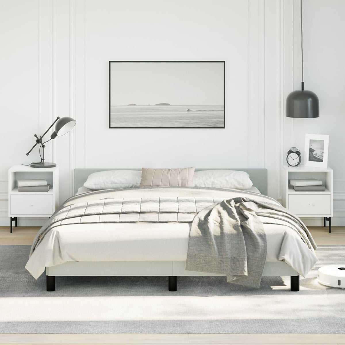 vidaXL Velvet Bed Frame Platform Bed, Scandinavian Style/Slats Support/No Box Spring Needed/Without Mattress/Easy Assembly, Light Grey Queen Bed