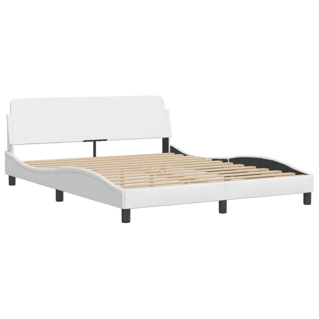 vidaXL White Faux Leather Double Bed Frame with Headboard - 59.8"x79.9" - Modern Waved Side Design, Sturdy Legs, Plywood Slats