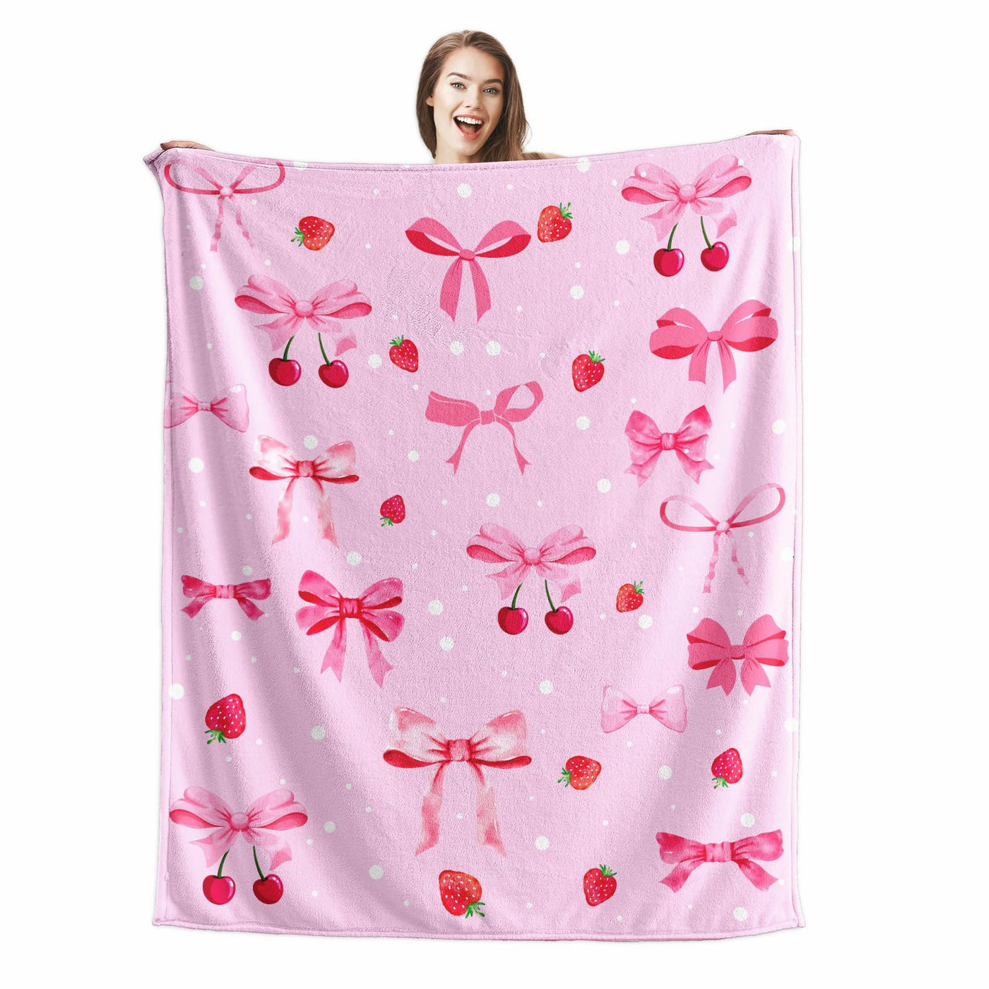 Wajade Strawberry Bow Gifts For Boys Girls - Strawberry Bow Blanket Birthday Easter Decor For Kids Age 3 4 5 6 7 8 9 10 11 12 Ye