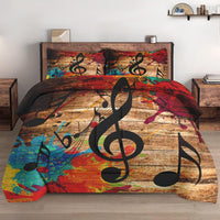 Wecozy 3 Pcs Comforter Set Queen Size With 2 Pillowcases, Musical Music Disco Bedding Set For Kids And Adults, Black Retro Woodb