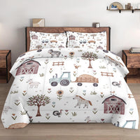Wecozy Twin Size Comforter Set With Pillowcase, Farm Animal Tractor House Tree Soft 2 Pcs Bedding Set For Kids And Adults Bedroo