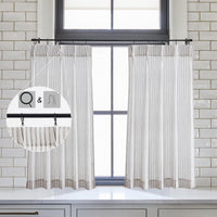 36 Inch Length Pinch Pleated Curtains For Bathroom Window,Striped Kitchen Tier Curtain With Hooks Rings,Gray And White Ticking S