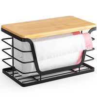 Aloceo Small Trash Bag Holder With Bamboo Top, Wall Mount Standard Garbage Bag Dispenser For Laundry Room Organization/Kitchen U