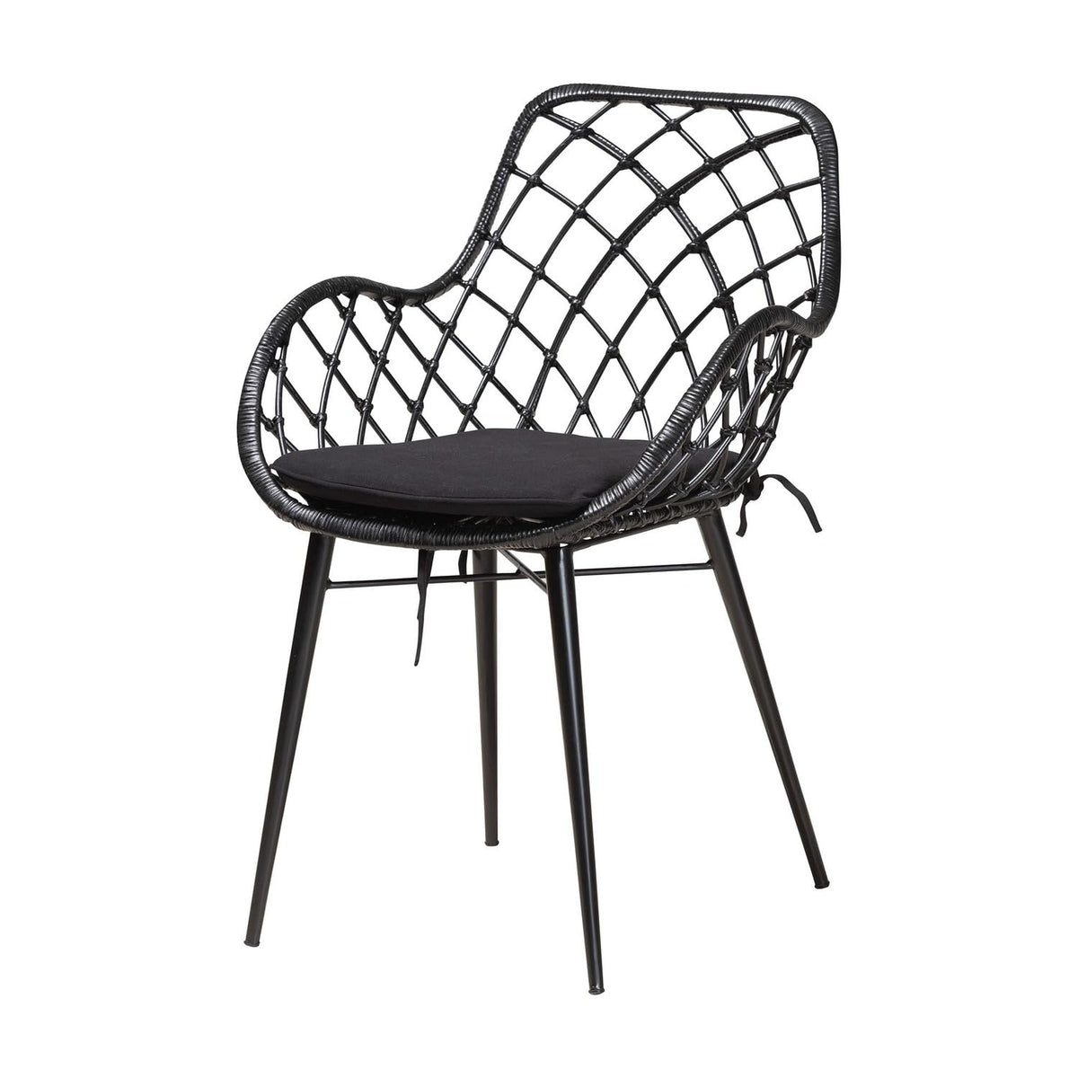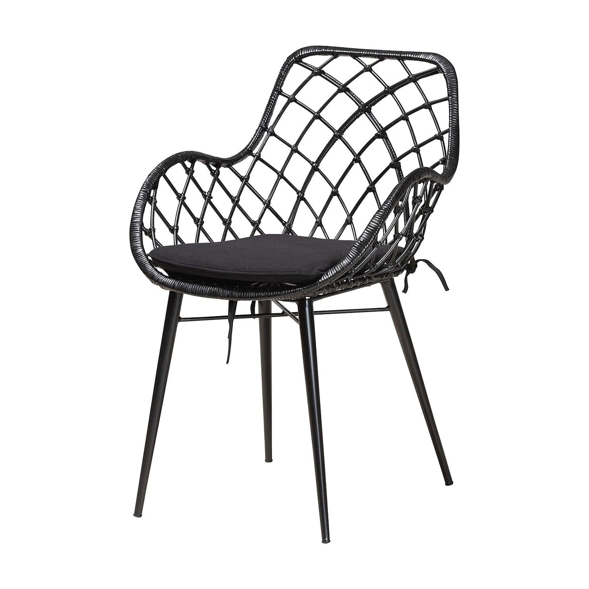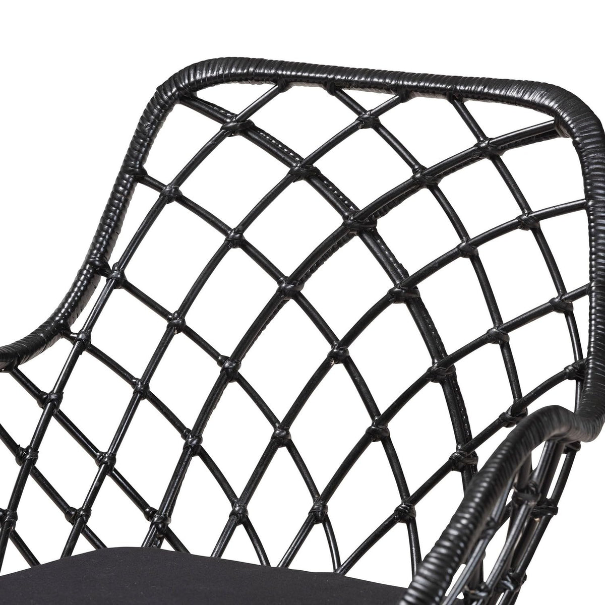 Enjoy an air of serenity for every meal with the exotic craftsmanship of the Ballerina dining set. Made in Indonesia, this Bohemian set includes four chairs and one table. Each chair features a metal base and handcrafted rattan seat fitted with armrests as well as a plush fabric upholstered cushion to encourage casual relaxation. The Ballerina requires assembly and utilizes a broad, rectangular tabletop with rounded corners to present ample space for each member of the table. Sporting a cozy design with minimalist charm, the Ballerina dining set is sure to become a beloved arrangement. Due to the nature of the natural materials used in this product, it may have variations in areas such as, but not limited to, color, pattern, grain and texture. The hair-like strands of rattan/rattan-fiber are common due to nature of the material.