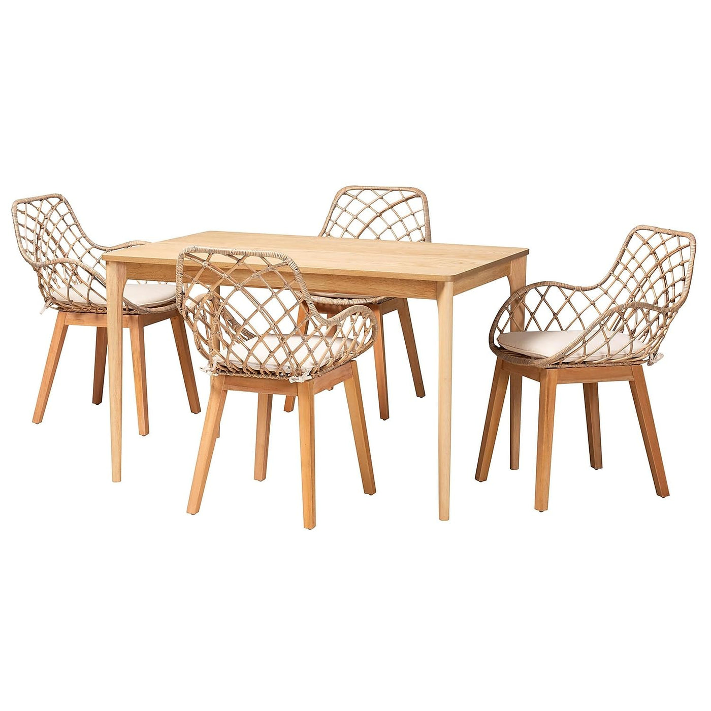 Baxton Studio Ballerina 47.2-inch W Dining Set, Greywash/Natural Brown/White, 5-Piece (2341282513280HT)