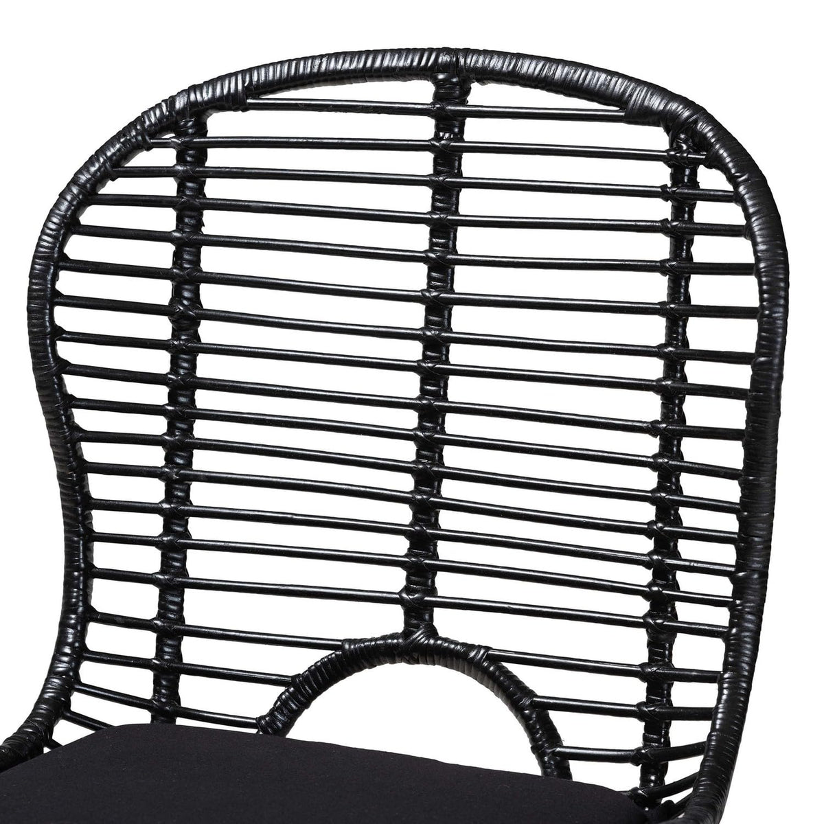 Dine with a sense of effortless serenity in the finely crafted Brenna dining set. Made in Indonesia, this Bohemian set includes four chairs and one table. Each chair consists of a metal base topped with a handcrafted rattan seat and fitted with a plush fabric upholstered cushion for sumptuous relaxation. The Brenna requires assembly and features a rectangular tabletop with rounded corners to provide ample space for each member of the table. Exhibiting exotic poise with minimalist charm, the Brenna dining set brings a tranquil quality to every occasion. Due to the nature of the natural materials used in this product, it may have variations in areas such as, but not limited to, color, pattern, grain and texture. The hair-like strands of rattan/rattan-fiber are common due to nature of the material.