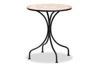 Add the finishing touch to your backyard sanctuary with the Talise outdoor dining table. Made in China, this table is comprised of a solid metal frame fitted with a ceramic tabletop. The round tabletop easily accommodates outdoor snacks and drinks, while its mosaic pattern lends an artistic feel to your space. The Talise requires assembly and utilizes unique, concave legs for excellent stability and support in stunning style. A remarkable solution to the needs of your backyard, the Talise outdoor dining table is sure to transform the feel of any space.