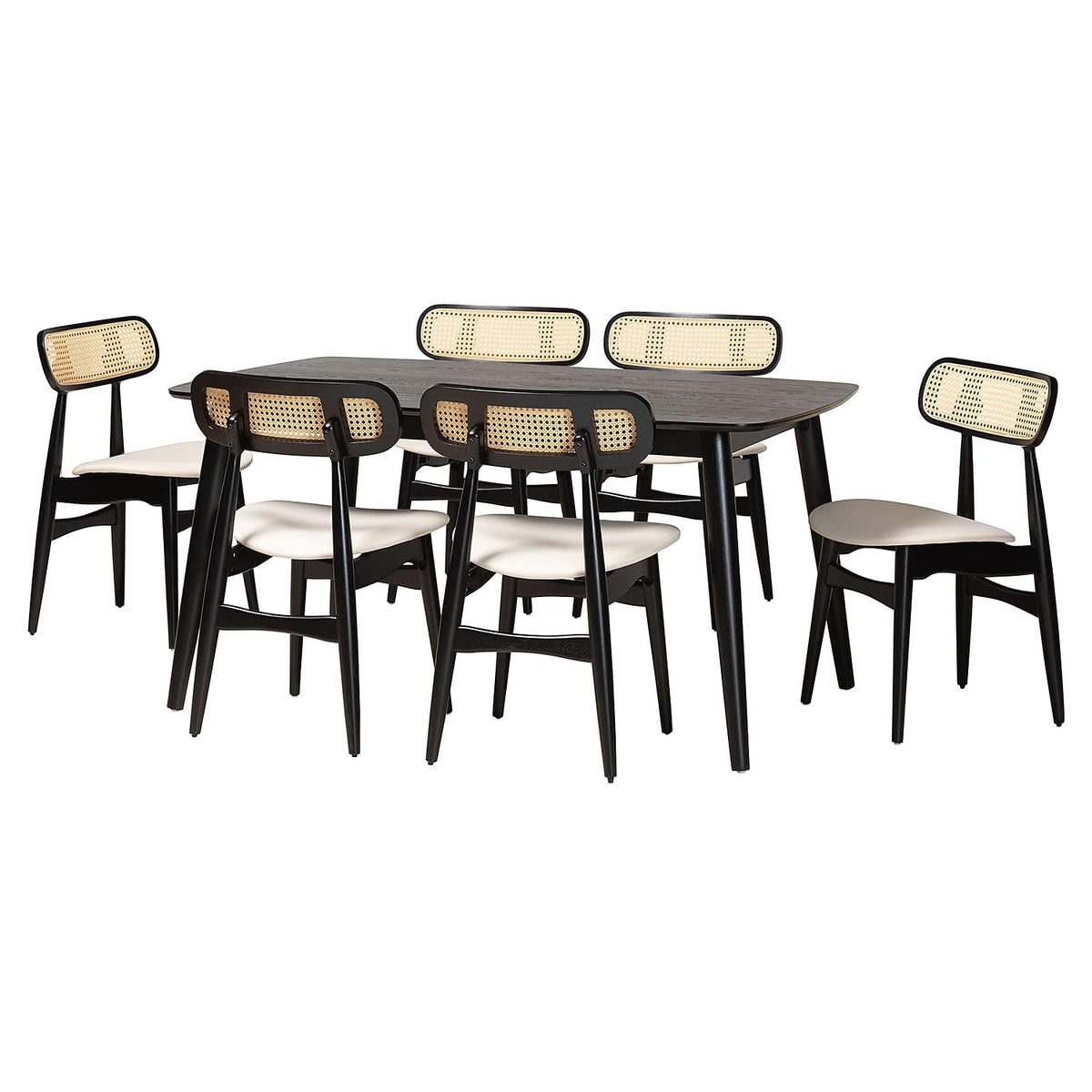Baxton Studio Tarana 59.1-inch W Dining Set, Cream/Black/Light Brown, 7-Piece (2341329713284HT)