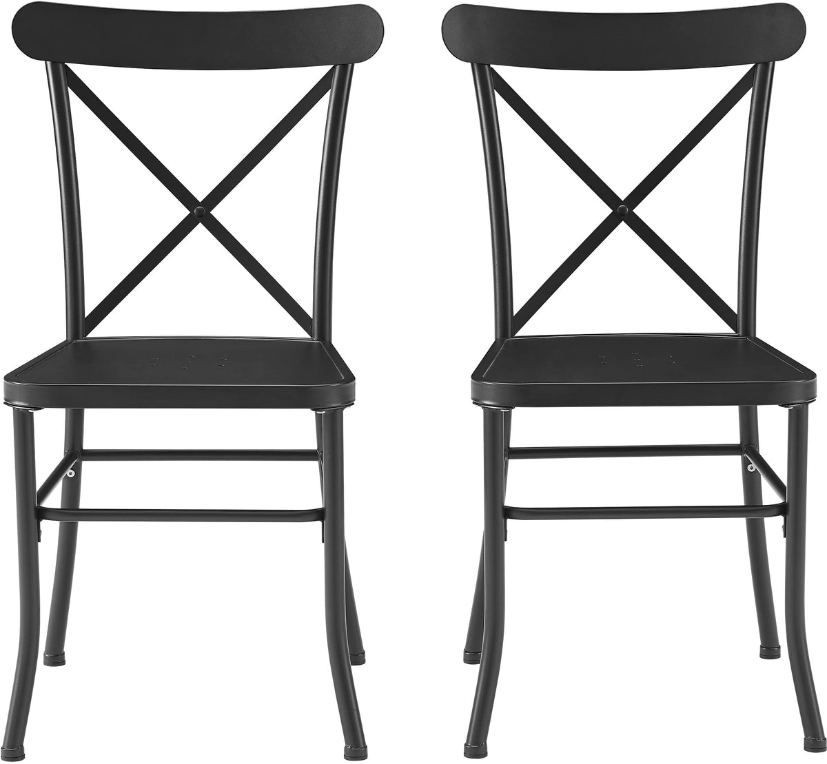Add French flair to any outdoor space with the Astrid 2-Piece Outdoor Dining Chair Set. Constructed of powder-coated steel, these classic chairs resist rust and sun fade. With a simple silhouette and charming x-back design, the Astrid Chairs make a great addition to your balcony or patio.