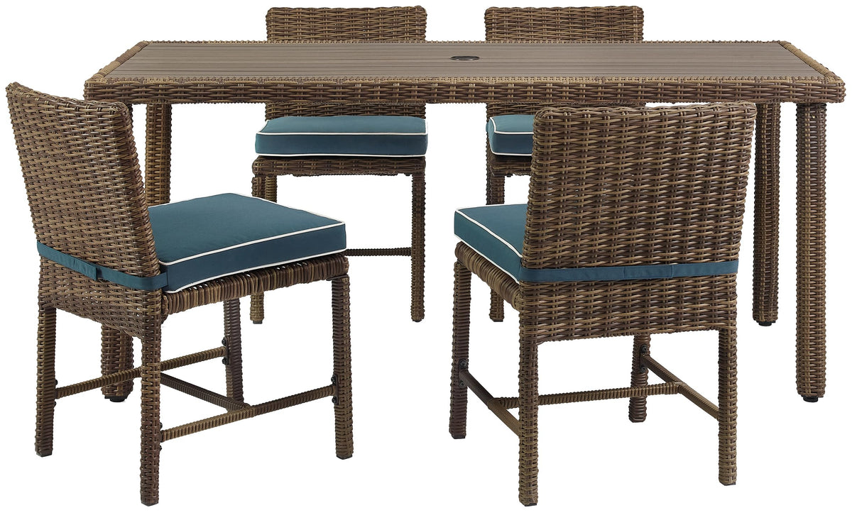 Crosley Furniture Bradenton 5-Piece Outdoor Dining Set For 4, Wicker Patio Table And Chairs For Backyard, Weathered Brown With Navy Cushions