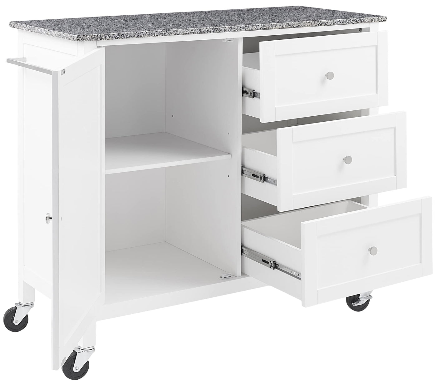 Crosley Furniture Soren Granite Top Rolling Kitchen Island Cart, Microwave Stand, Coffee Bar, With Shelves, White