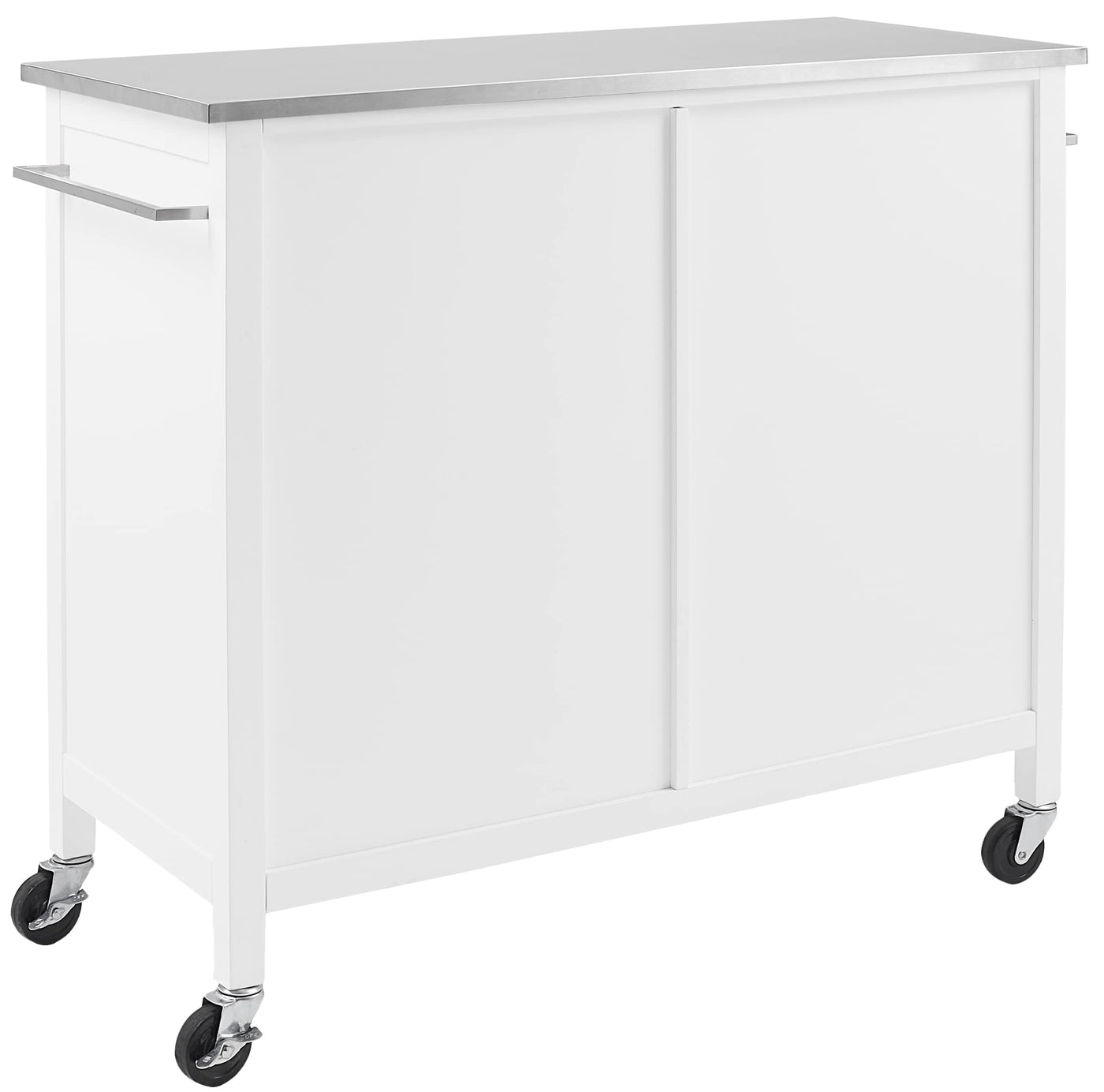 Crosley Furniture Soren Stainless Steel Top Rolling Kitchen Island Cart, Microwave Stand, Coffee Bar, White