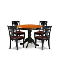 East West Furniture ANAV5-BLK-LC 5 Piece Dinette Set for 4 Includes a Round Kitchen Table with Pedestal and 4 Faux Leather Dining Room Chairs, 36x36 Inch, Black & Cherry