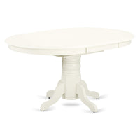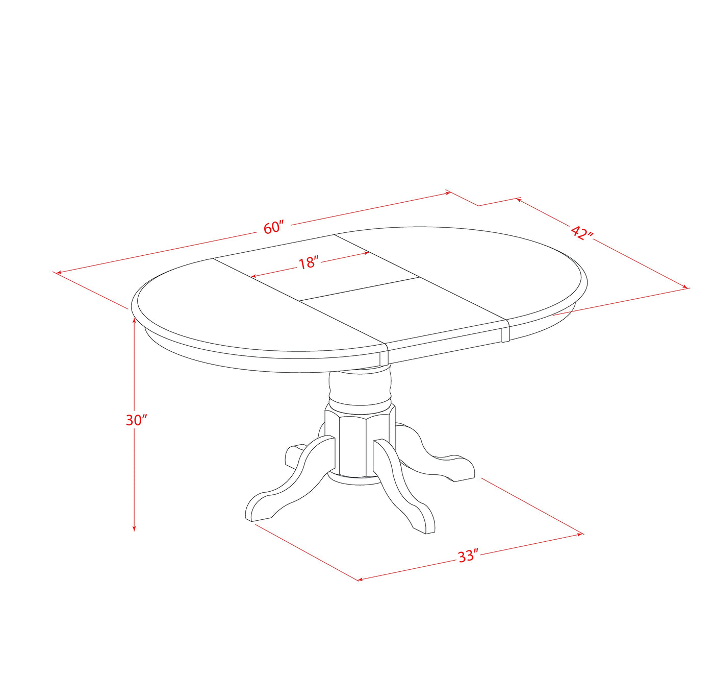 EAST WEST FURNITURE - AVDO5-LWH-W - 5-PIECE DINING TABLE SETThis exceptional modern kitchen table is capable of providing an impressive impression of dining style, suitable for both typical and fashionable decoration. This wooden kitchen table set will infuse your dining room with a great dose of charm. The wonderful 5-piece Traditional dining room set highlights its curves and details, adding a modern twist to its otherwise traditional look. The wood chairs and dining table are made of Top Quality Asian wood (Rubber Wood), ensuring excellent sturdiness and stability for the wooden dining chairs and butterfly leaf round dining table. The modern sturdy solid wood structure, comfortable wooden seat, and slatted back of the wood kitchen table provide a cutting-edge look to your kitchen, offer wonderful stability to this excellent dining room table set, and comfortable support to your back. Thanks to its fantastic sizes, this kitchen table set is quite simple to carry, clean, assemble and move around. The classic mid-century dining table style blends seamlessly with any home decor, and the smooth Linen White wooden seat and slatted back of the kitchen chairs ensure a comfortable seating experience for users.PRODUCT FEATURES: Frame Material: Asian Wood Seat: Wooden Color: Linen White Wood Dining Chairs Dimensions: Length: 21; Width: 18; Height: 39. Dinner Table Dimensions: Length: 60/42; Width: 42; Height: 30.Includes: 4 Dining Room Chairs and 1 Round Wooden Dining Table.