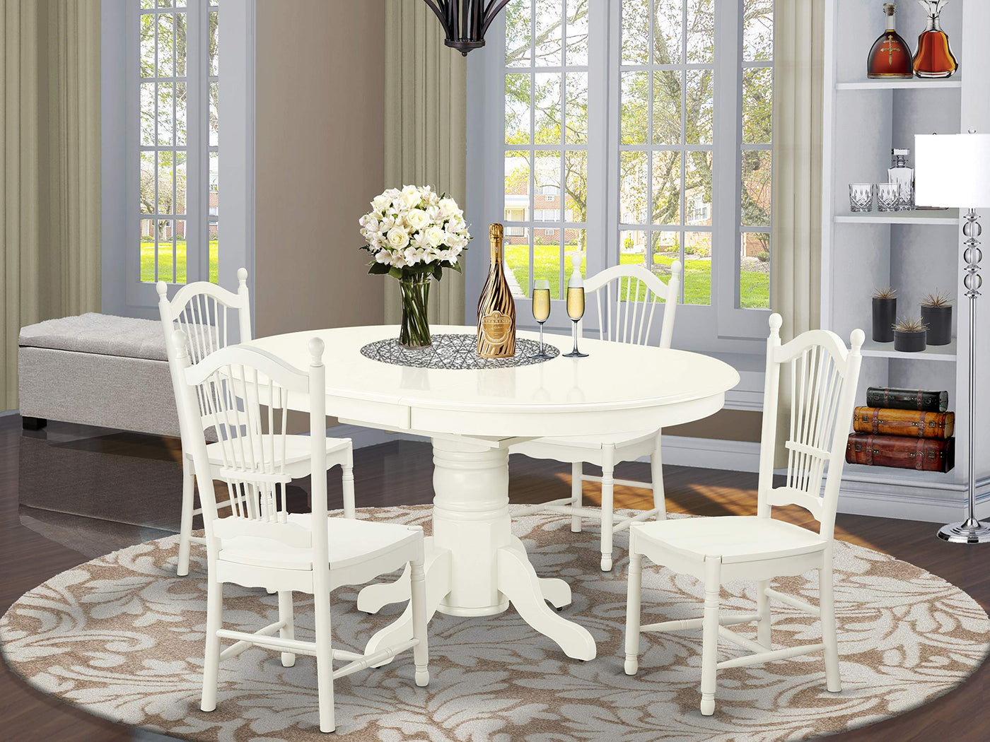 East West Furniture AVDO5-LWH-W 5 Piece Dining Room Furniture Set Includes an Oval Kitchen Table with Butterfly Leaf and 4 Dining Chairs, 42x60 Inch, Linen White