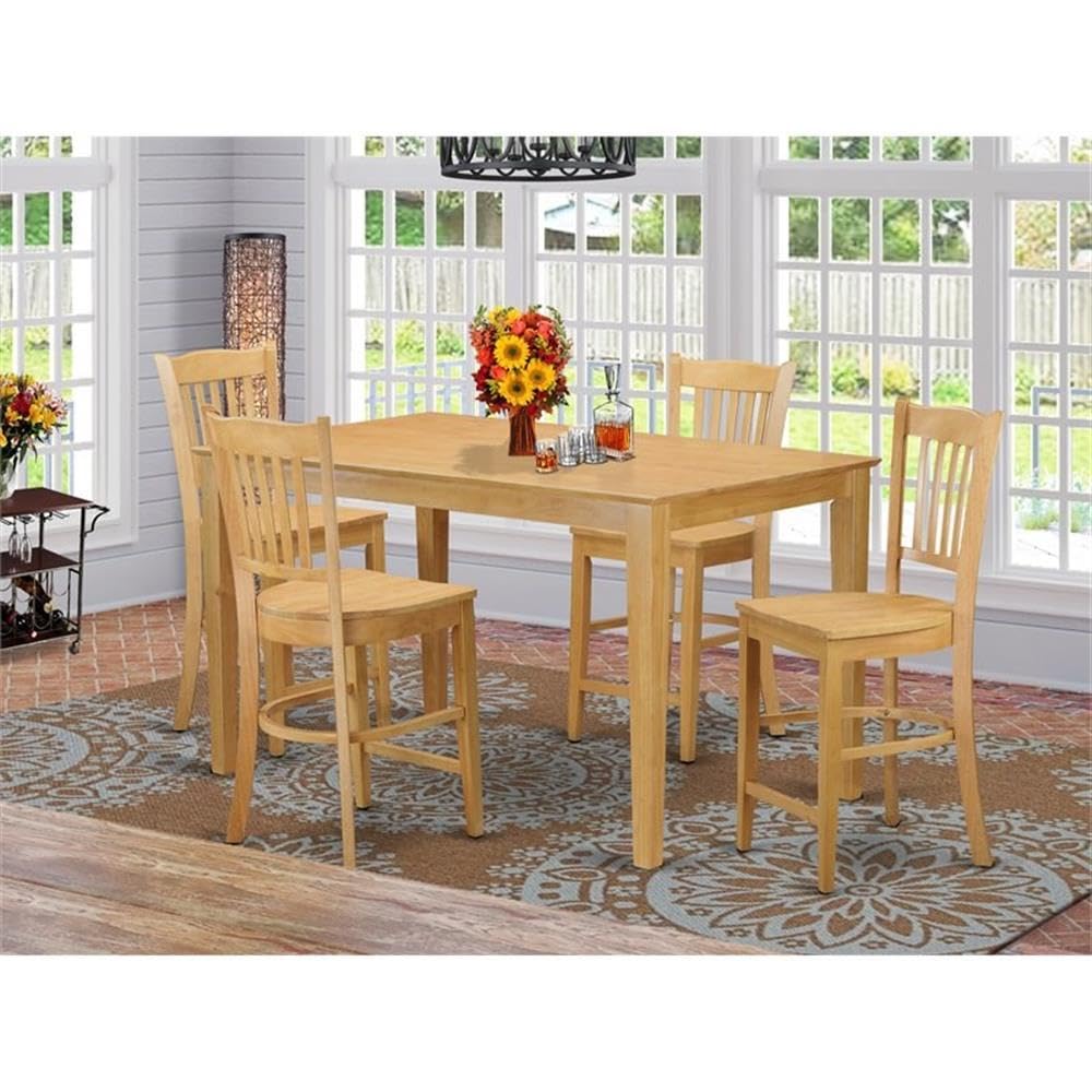 East West Furniture CAGR5H-OAK-W 5 Piece Counter Height Dining Set Includes a Rectangle Dinette Table and 4 Kitchen Dining Chairs, 36x60 Inch, Oak