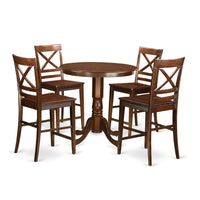 East West Furniture JAQU5-MAH-W 5 Piece Kitchen Counter Set Includes a Round Dining Room Table with Pedestal and 4 Dining Chairs, 36x36 Inch, Mahogany