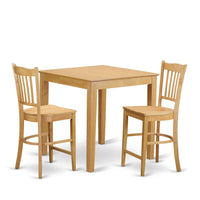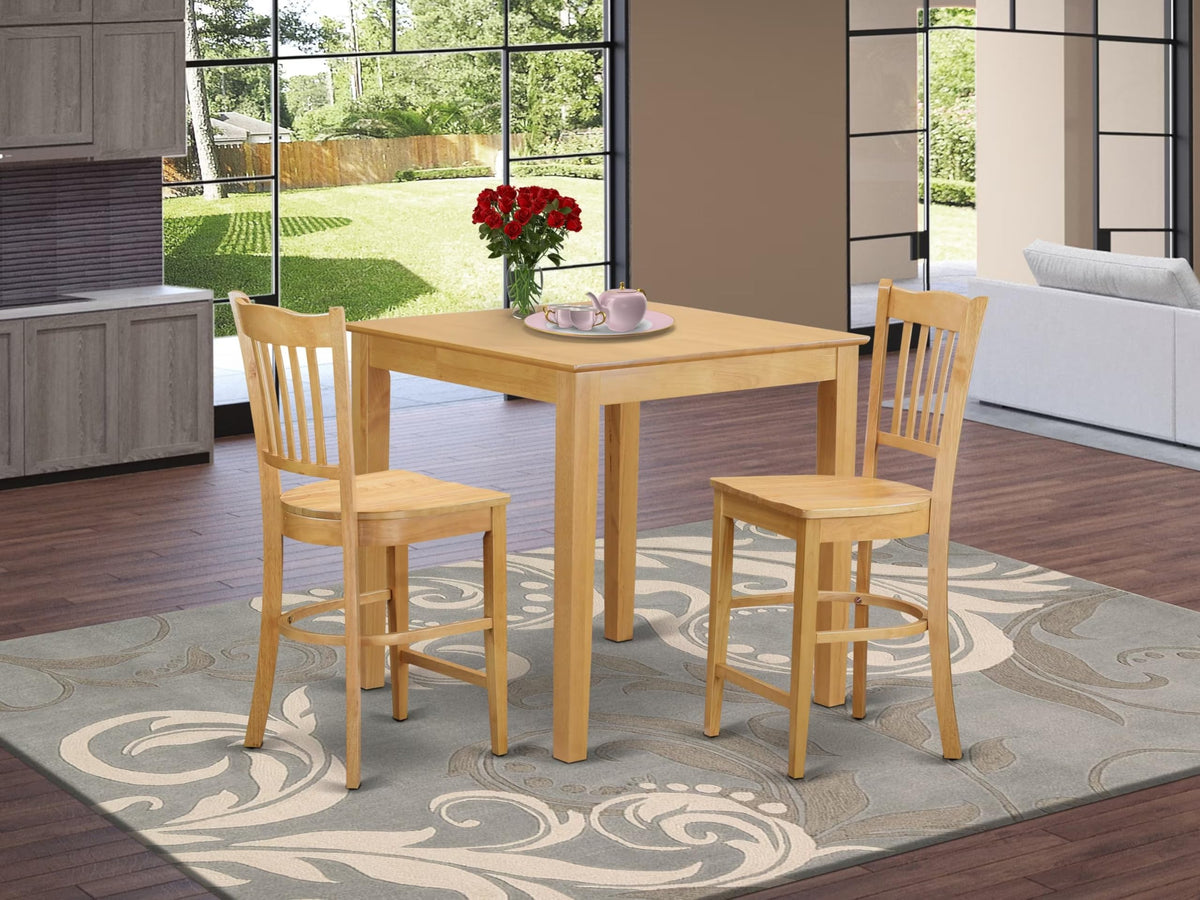 East West Furniture PBGR3-OAK-W 3 Piece Counter Height Dining Set for Small Spaces Contains a Square Wooden Table and 2 Kitchen Chairs, 36x36 Inch, Oak