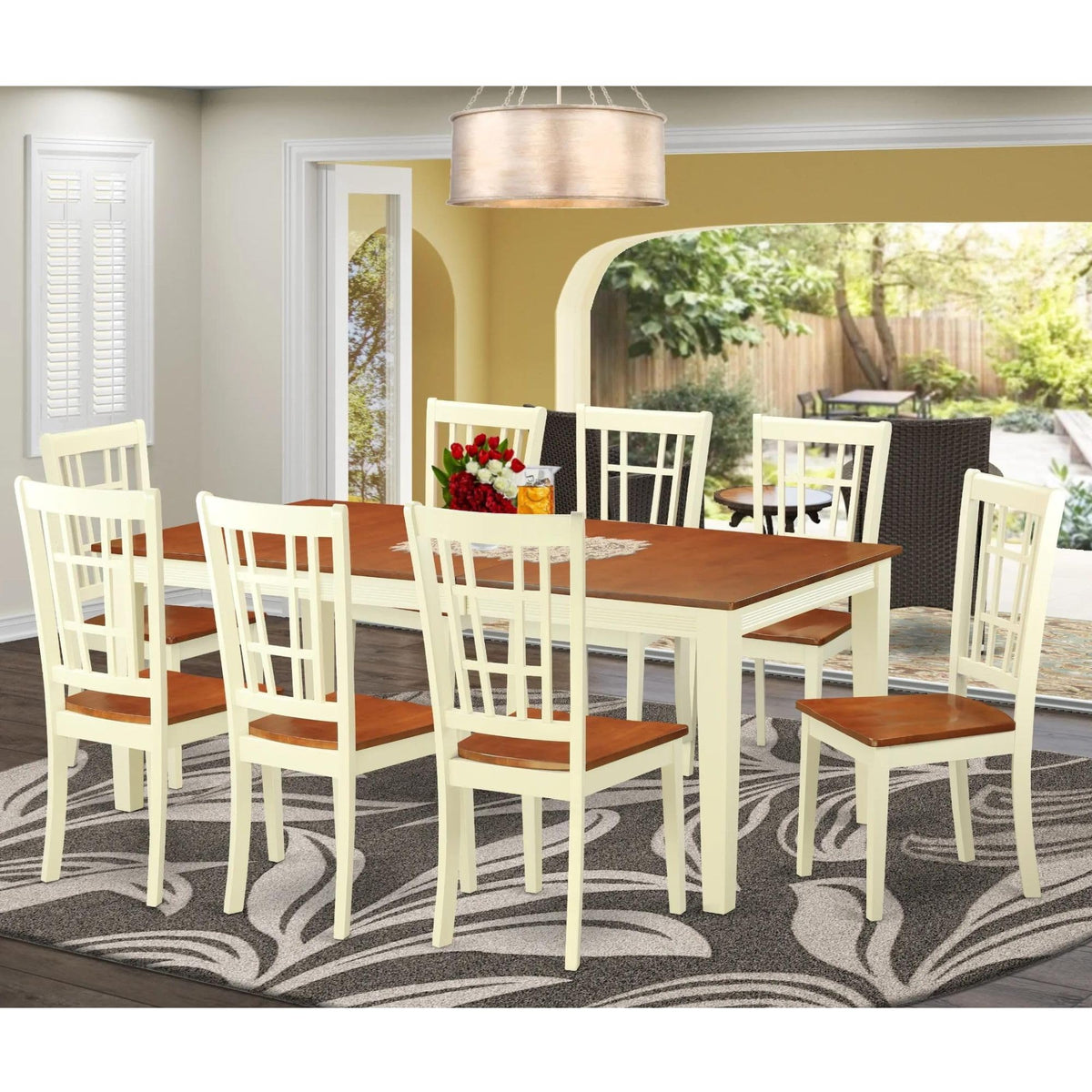 East West Furniture QUNI9-WHI-W 9 Piece Dining Set Includes a Rectangle Dining Table with Butterfly Leaf and 8 Kitchen Chairs, 40x78 Inch, Buttermilk & Cherry