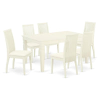 East West Furniture WEIP7-WHI-C 7Pc Dinette Set Includes a Rectangular Kitchen Table with Butterfly Leaf and Six Linen Seat Dining Chairs, White Finish