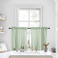 Homeideas Sage Green Kitchen Curtains 30 X 36 Inches 2 Panels Set Non-See-Through Privacy Semi Sheer Short Window Curtains Fish