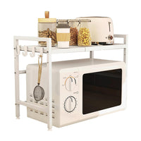 This Microwave Rack Made Of Durable Carbon Steel And Coated With Waterproof And Rust-Resistant Paint.Can Be Used In The Kitchen, Wardrobe, Shower Room Or Garage,The Included Hooks Can Store Kitchen Utensils Or Towels.