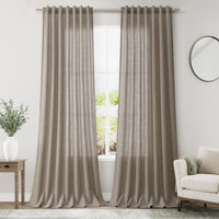 Nanspring Mocha Back Tab Linen Curtains For Living Room 2 Panels Set Semi Sheer Curtains For Dining Room 52X102