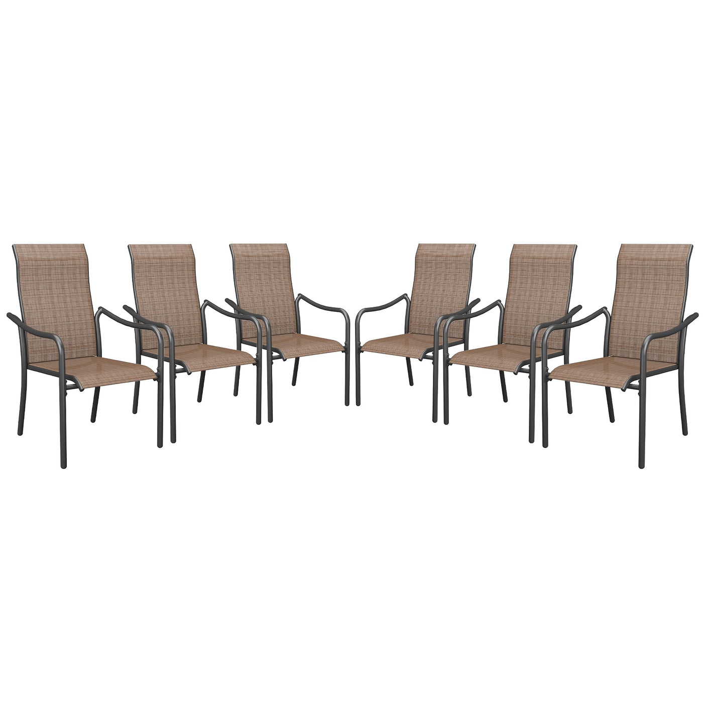 Vicllax Patio Stackable Dining Chairs Set Of 6, Outdoor Chairs Breathable Fabric And High Back Stacking Chairs For Balcony Porch
