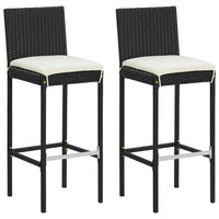 vidaXL 2X Garden Bar Stool with Cushions Outdoor Patio Balcony Kitchen Counter Pub Home Lounge Seating Chairs Stools Black Poly