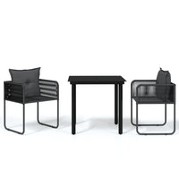 vidaXL 3-Piece Patio Dining Set with Back Pillows, PE Rattan Chairs & Glass Tabletop, Powder-Coated Steel Frame - Black