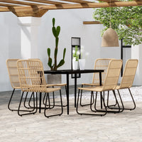 This exquisitely designed garden dining set is meant to be the focal point of your garden or patio! The steel frame makes the table and chairs sturdy and stable. As the set is also lightweight, all items are easy to move around. Whats more, the smooth glass tabletop is easy to clean with a damp cloth and perfect for placing meals, drinks and other decorative items. The garden chairs are made of PE rattan, resistant to poor weather and UV rays. Additionally, the curved backrests also add extra seating comfort for the chairs. Note: In order to extend the life of your outdoor furniture, we recommend you to clean it regularly and do not leave it outdoors without protection unnecessarily. Clean: Use a mild soap solution. Storing: If possible, store in a cool, dry place indoors. If the product is stored outdoors, protect it with a waterproof cover. Wipe and dry the excess water or snow from flat surfaces after a rain or snowfall. Allow sufficient air circulation to avoid moisture-related damage.
