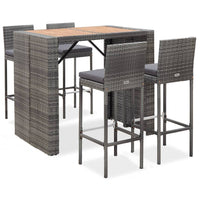vidaXL Patio Bar Set 5 Piece, Outdoor Bar Table Set with Wood Tabletop, Patio Furniture Set with Cushions, Dining Set for Garden, Rattan and Wood Gray
