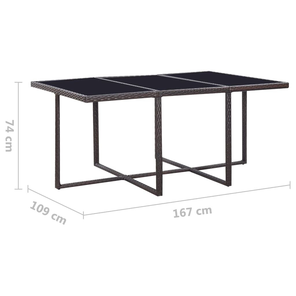 This rattan dining set, with an elegant design, will be a great choice for al fresco dining or relaxing in the garden. The powder-coated steel frames make the table, chairs and stools strong and sturdy, and thanks to their lightweight constructions, all items are easy to move. Thanks to the weather-resistant and waterproof PE rattan, the dining set is easy to clean. The glass top is also easy to clean with a damp cloth.