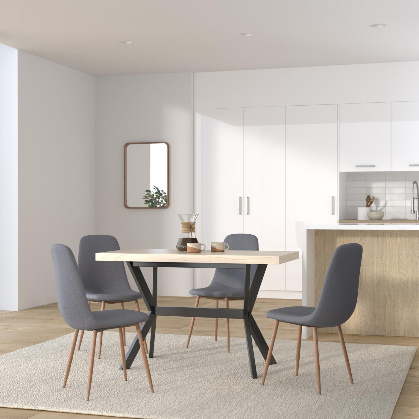 Assembly is easy. Important note: The mango wood shows natural grains, making each of the dining tables unique and slightly different from the next; the delivery is random.