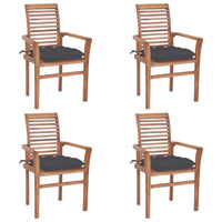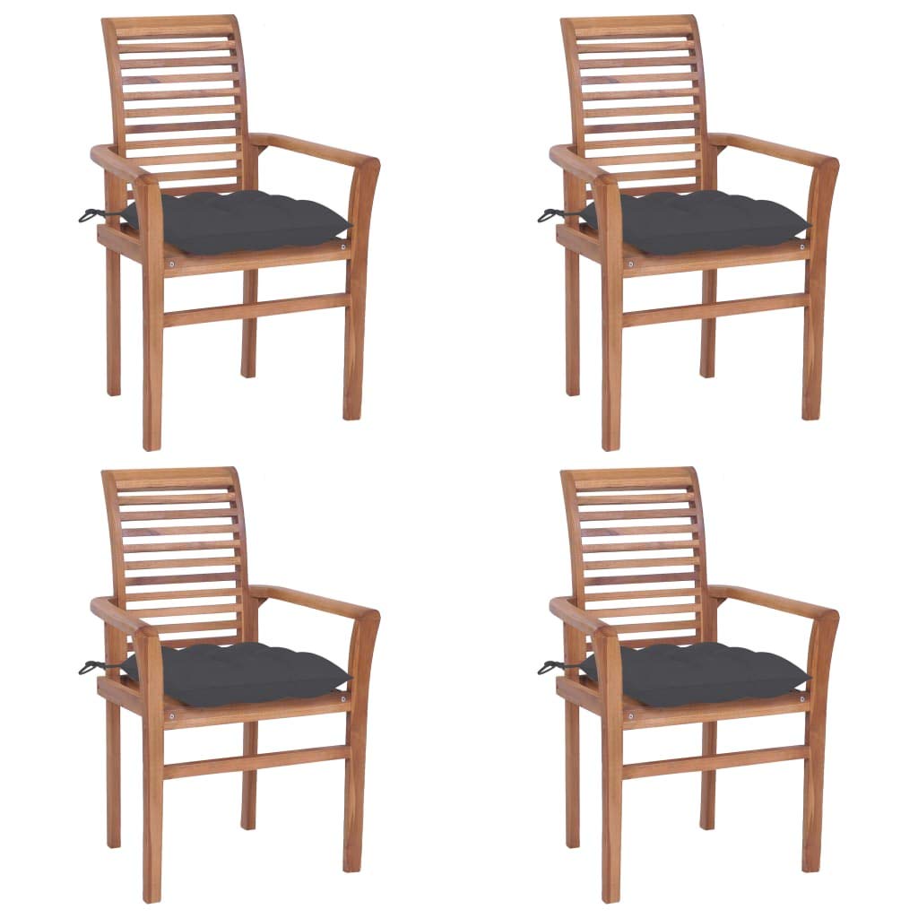 vidaXL Solid Teak Wood Dining Chairs Set of 4 with Anthracite Cushions - Stacking Ergonomic Wooden Seating for Indoor and Outdoor use