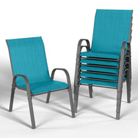 Vonzoy Patio Dining Chairs Set Of 6, Stackable Dining Chairs High Back, Breathable Seat Fabric And Alloy Steel Frame Fit Backyar