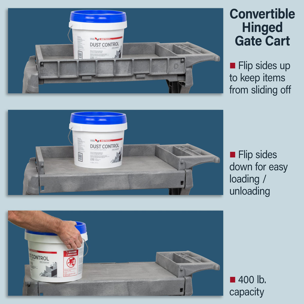 The Akro-Mils ProCart 400 Pound Capacity Heavy Duty 2 Tier Rolling Utility Dolly Cart with Wheels is a versatile, timesaving “double-duty” plastic tool cart. It's engineered to adapt to all the ways - and all the places - you work. Flip its side gates down and the ProCart is a flat-top cart - perfect for sliding heavy boxes on and off the shelves. Quickly flip its side gates up and the ProCart is a box-top cart for securely transporting cartons, supplies, or items that might roll around. It's easy to maneuver, even when fully loaded. Even under its 400-pound maximum payload, the ProCart easily maneuvers around tight corners and through narrow aisles with 5-inch non-marking wheels. Use the optional rail kits to hang AkroBin plastic storage bins or steel parts cabinets under the top shelf and the ProCart becomes a customized, mobile workbench for the workshop, garage or crafting room. It doesn't just look different. It is different! Made in the USA.