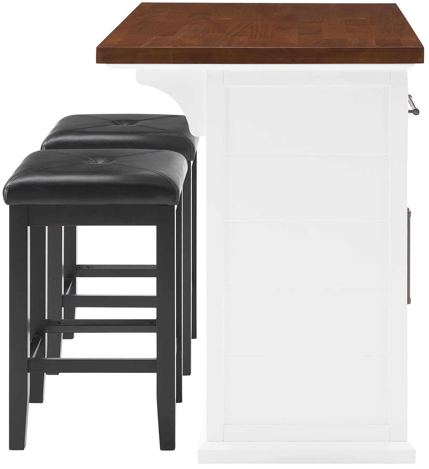 Crosley Furniture Bartlett Kitchen Island with Wood Top and Upholstered Square Stools, White/Black