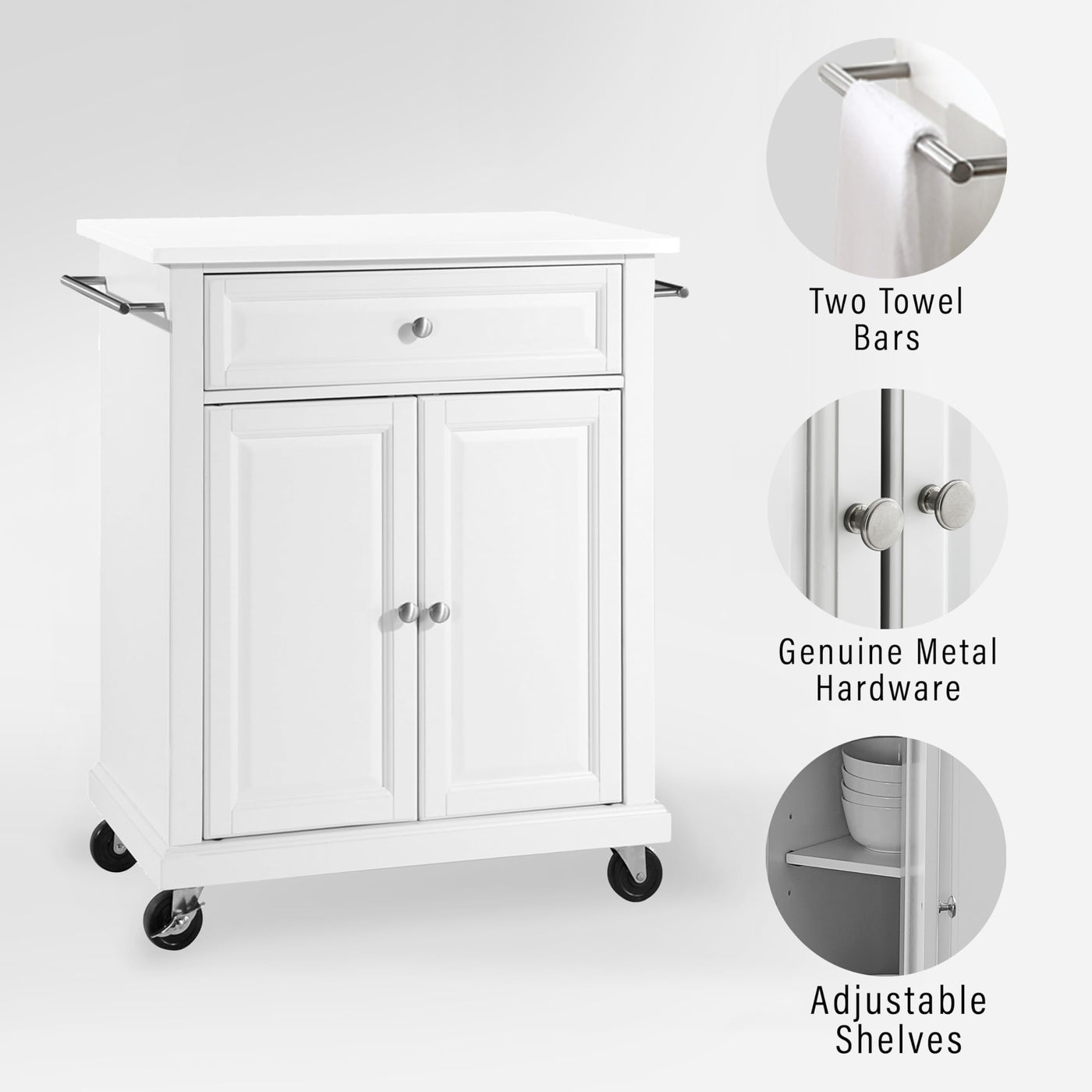Crosley Furniture Compact Stone Top Small Rolling Cart With Shelves, Microwave Stand With Towel Rack, White