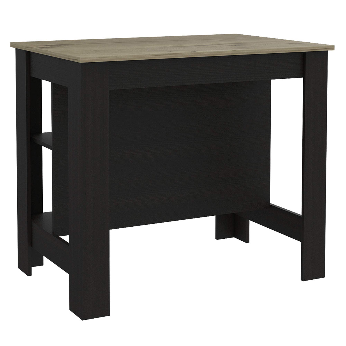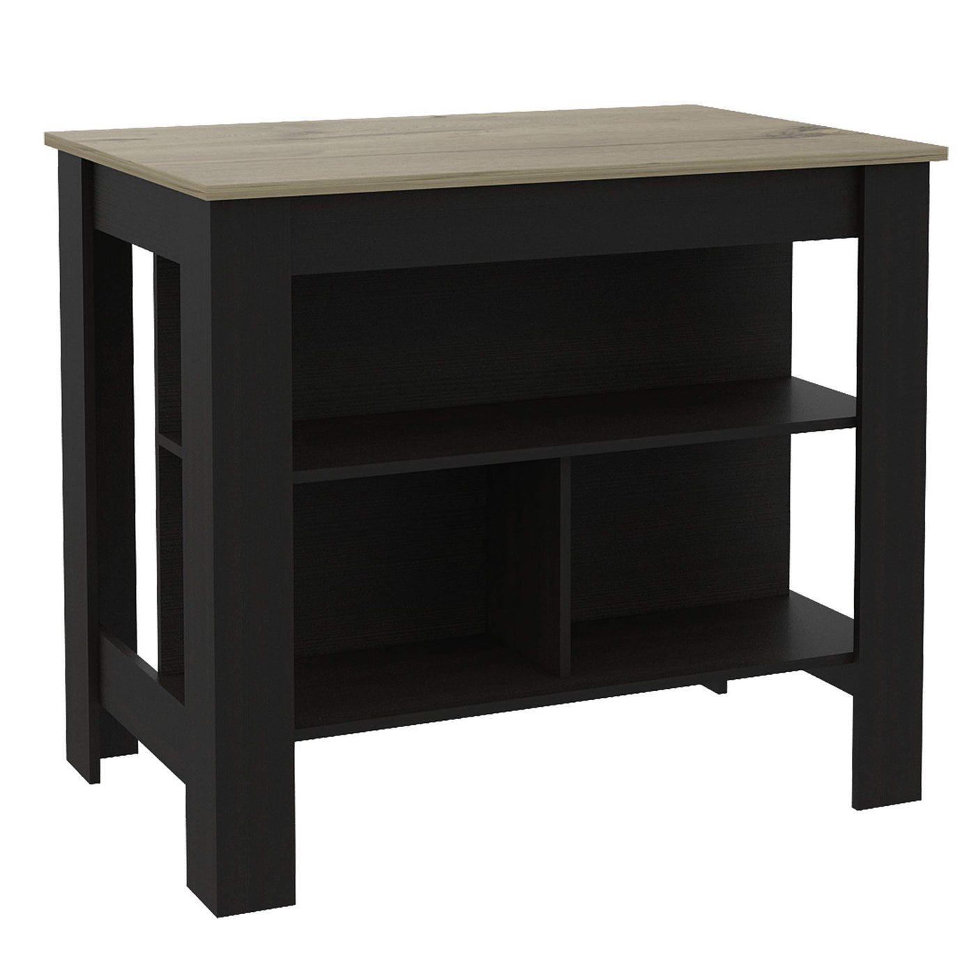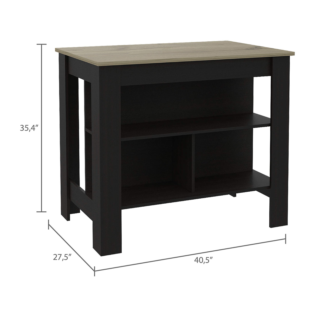 DEPOT E-SHOP Delos Kitchen Island 35.4H X 40,5W X 27,5D with Open Shelves, Large Tabletop, Black/Light Oak - Kitchen