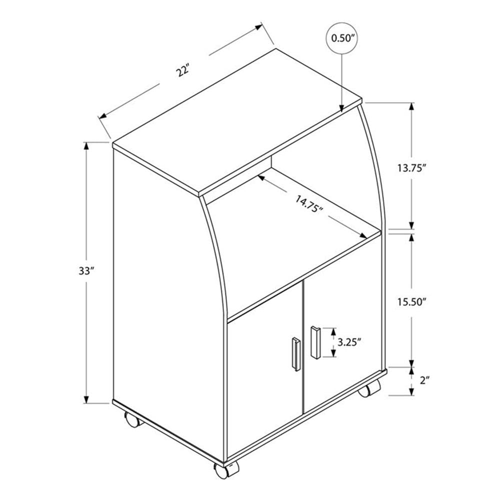 A valuable addition to any home, this multipurpose cart will add storage and functionality to your cooking space. The double door closed storage space includes one center shelf to help keep you organized while to open storage on top makes a perfect space to put a coffee maker, toaster or cooking books. With clean lines, white finish, silver colored door handles and castors for easy mobility, this cart is the perfect addition to any modern kitchen. Can also be used as a storage solution for laundry rooms or craft rooms.
