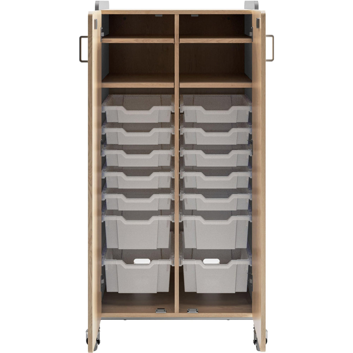 Safco Products 3935GRY Whiffle Typical 15, Double Column 14-Tote 2-Shelf Doored Rolling Storage Cart with Magnetic Dry-Erase Back, Gray, 60" H, Tall