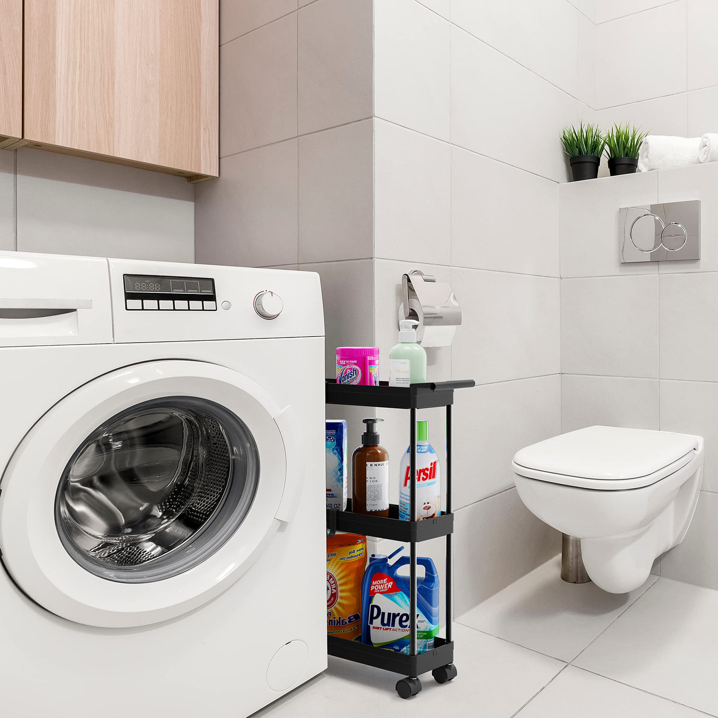 Simple Houseware 3-Tier Slim/Super Narrow Kitchen Cart With Handle, Hooks And Storage With Shelves, Black
