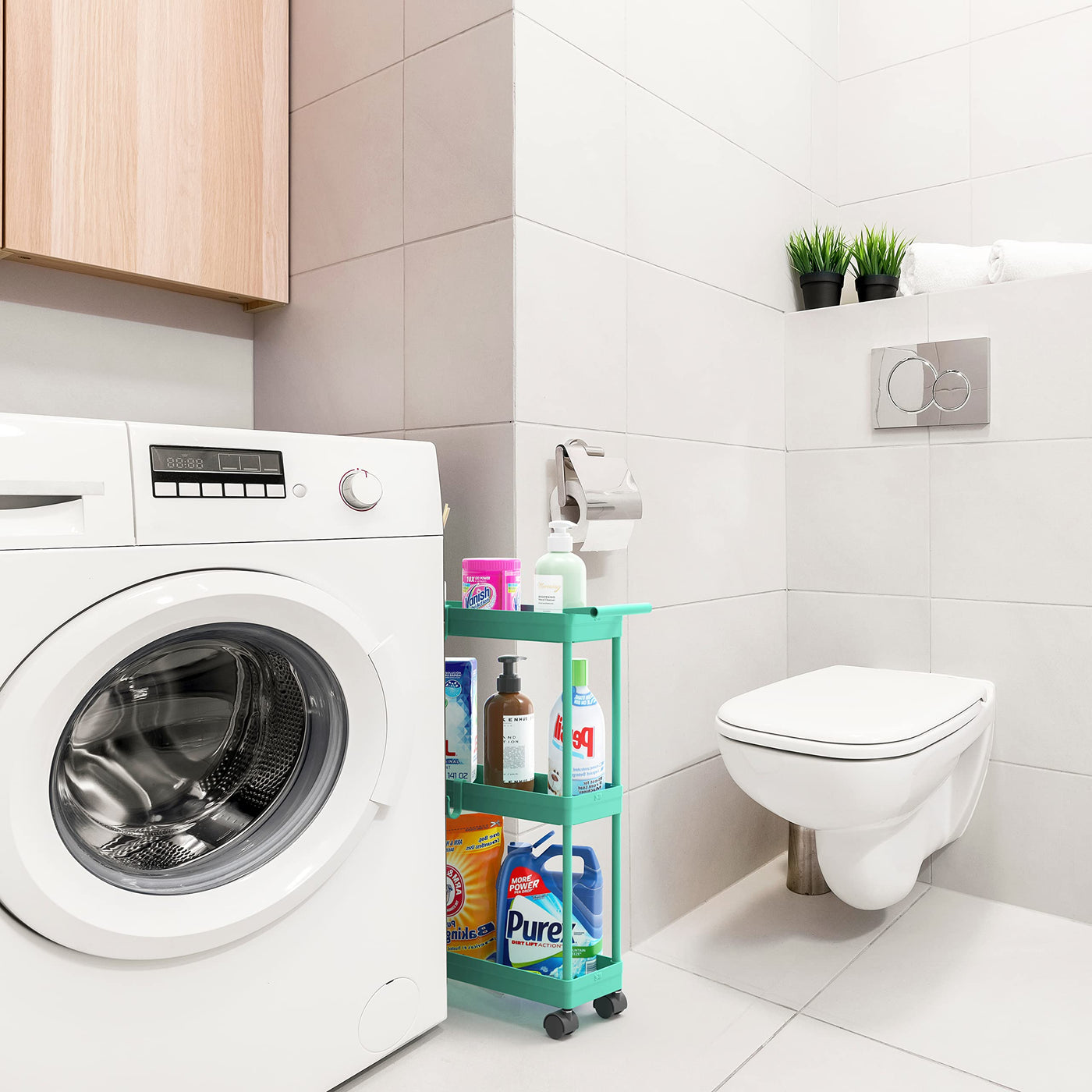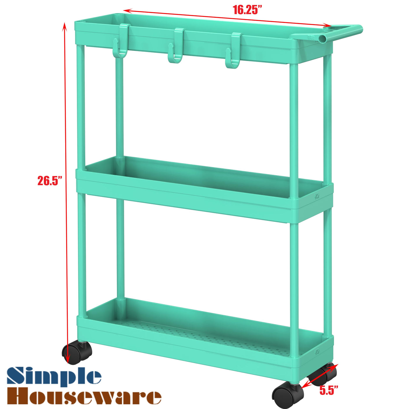 Simple Houseware Kitchen Cart Storage 3-Tier Slim/Super Narrow Shelves With Handle, 26.5'' Height/5.5'' Width For Narrow Place, Turquoise