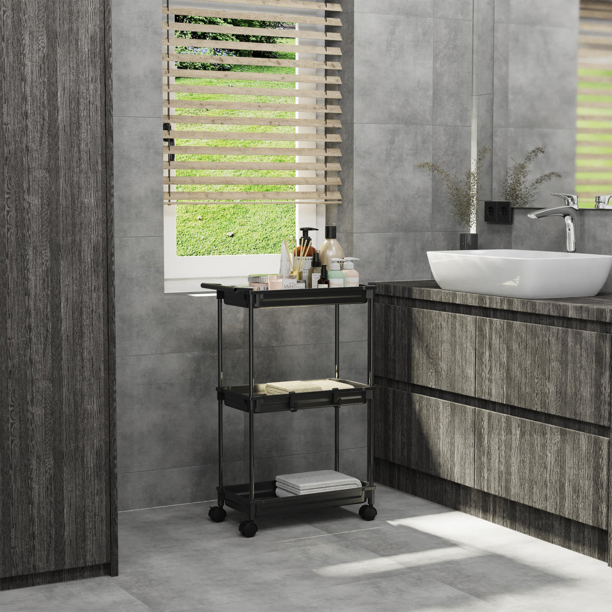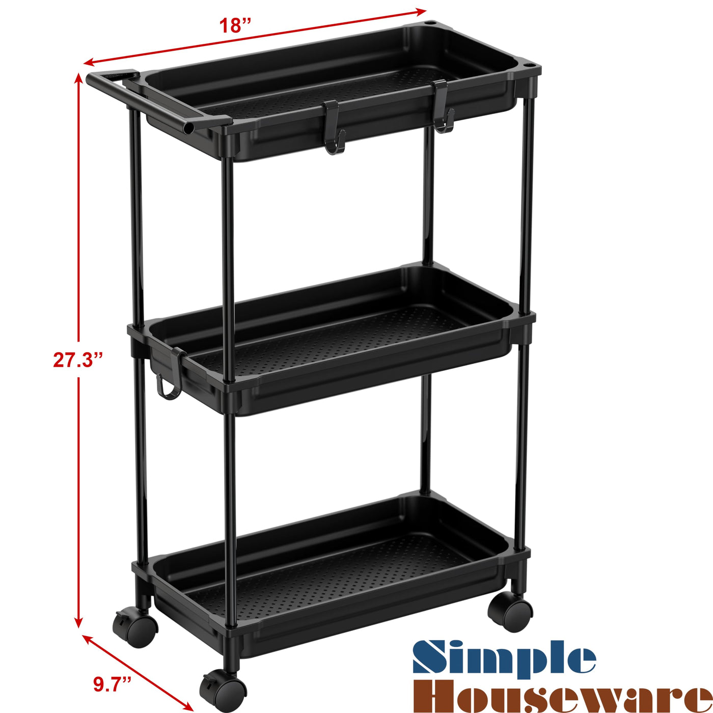 Simple Houseware Standard 3-Tier Slim Rolling Storage Cart, Black