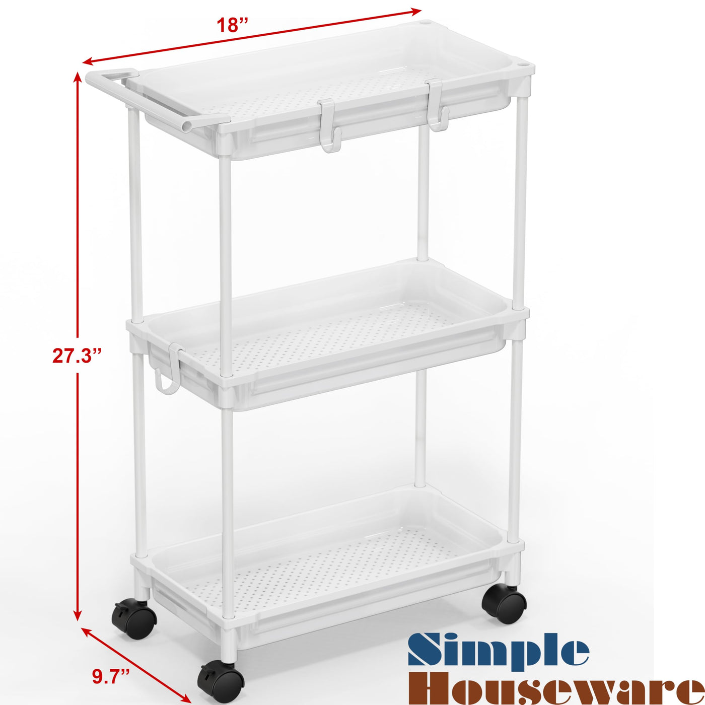 Simple Houseware Standard 3-Tier Slim Rolling Storage Cart, White