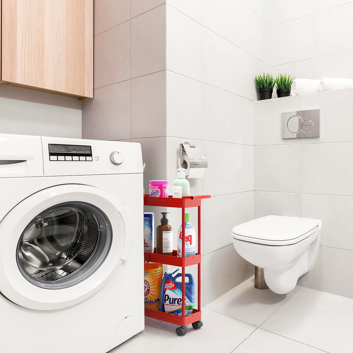Simplehouseware Kitchen Cart Storage 3-Tier Slim/Super Narrow Shelves With Handle, 26.5'' Height/5.5'' Width For Narrow Place, Red