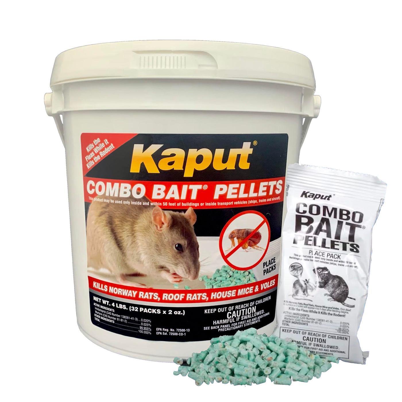 Kaput Combo Rat Bait Pellets Deliver The First Rodenticide That Also Eliminates Fleas For An All-Around Approach To Pest Control. The Bait Is Effective Against Norway And Roof Rats; House Mice; Meadow, Pine, And Montane Voles; And The Fleas That Reside On These Rodents And May Be Carriers Of Infectious Diseases.