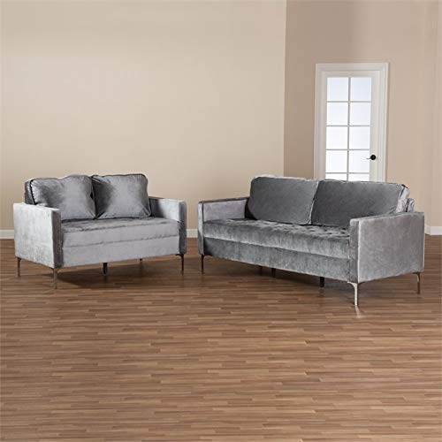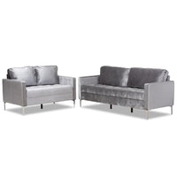 Baxton Studio Clara Modern and Contemporary Grey Velvet Fabric Upholstered 2-Piece Living Room Set