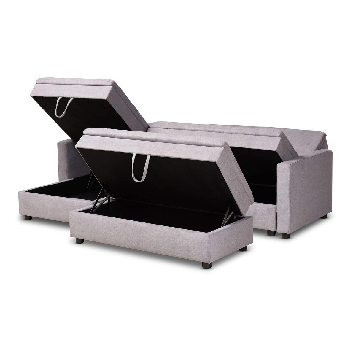 Baxton Studio Noa Modern and Contemporary Light Grey Fabric Upholstered Left Facing Storage Sectional Sleeper Sofa with Ottoman